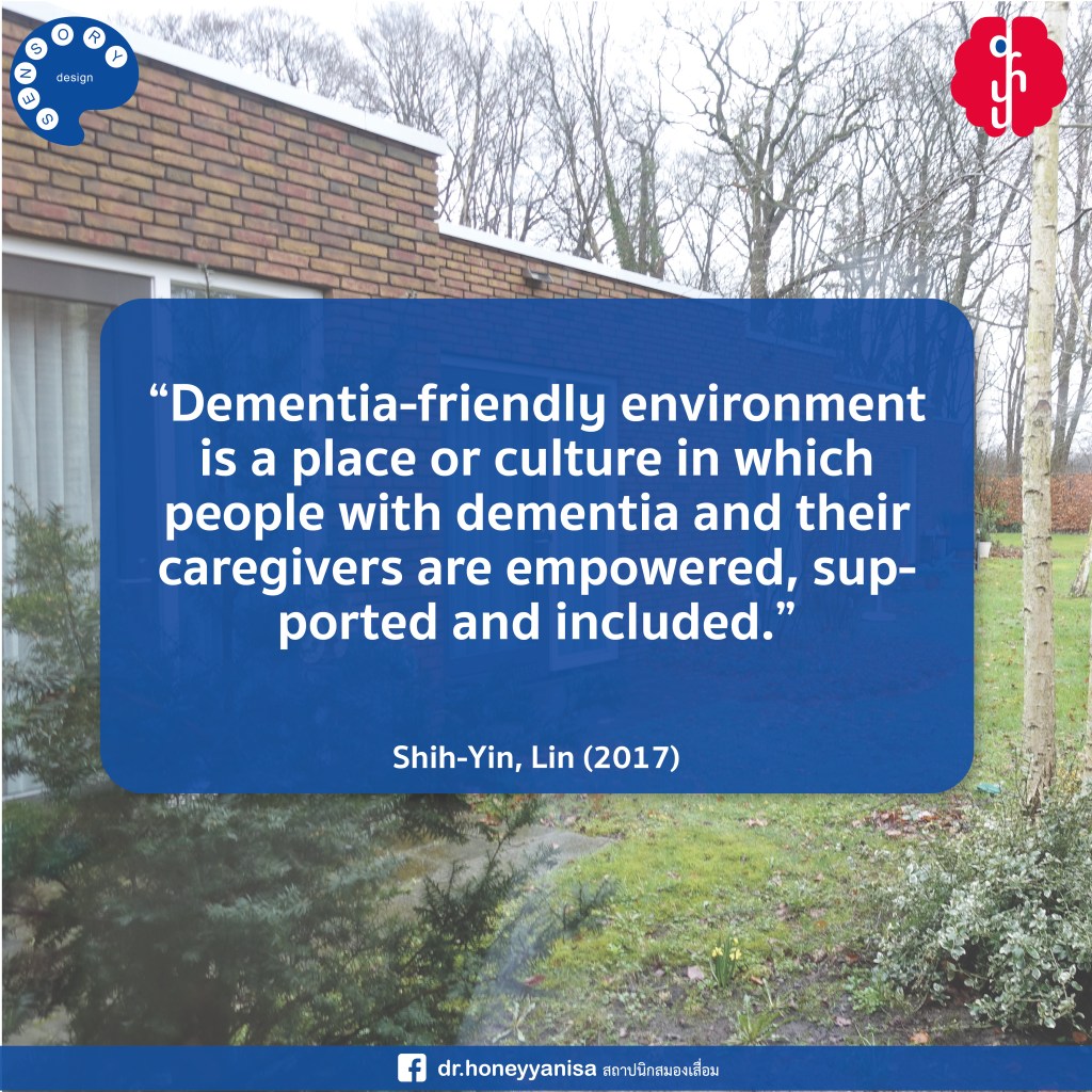 สภาพแวดล้อมที่เป็นมิตรต่อภาวะสมองเสื่อมหมายถึงสภาพแวดล้อมทางกายภาพ สังคม และวัฒนธรรมที่ออกแบบและปรับให้ตรงกับความต้องการเฉพาะและความท้าทายที่บุคคลที่มีภาวะสมองเสื่อมต้องเผชิญ มีจุดมุ่งหมายเพื่อสร้างบรรยากาศที่สนับสนุนและเสริมสร้างพลังซึ่งช่วยเพิ่มคุณภาพชีวิตสำหรับผู้ที่มีภาวะสมองเสื่อม การสร้างสภาพแวดล้อมที่เป็นมิตรต่อภาวะสมองเสื่อมเกี่ยวข้องกับวิธีการแบบองค์รวมที่ครอบคลุมและคำนึงถึงความเป็นอยู่ที่ดีทางร่างกาย สังคม และอารมณ์ของบุคคลที่มีภาวะสมองเสื่อม การส่งเสริมความเป็นอิสระ ลดความเครียด และเพิ่มความสะดวกสบาย สภาพแวดล้อมที่เป็นมิตรต่อภาวะสมองเสื่อมสามารถมีส่วนสำคัญต่อคุณภาพชีวิตโดยรวมของผู้ที่มีภาวะสมองเสื่อม