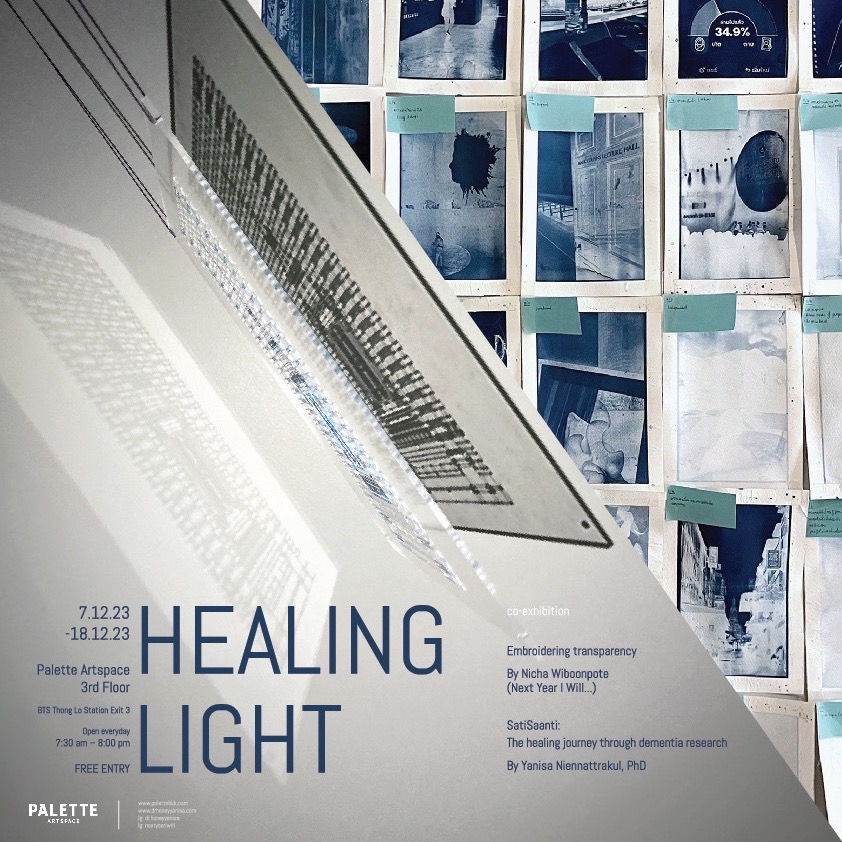 “Healing Light” is a collaborative exhibition that showcases the creative talents of Nicha Wiboonpote (@nextyeariwill) and Yanisa Niennattrakul (@dr.honeyyanisa), which employ diverse embroidery and cyanotype techniques to convey their unique visions. This showcase explores the multifaceted concept of light, interpreting it as a powerful medium for artistic expression and a therapeutic instrument for healing. The first perspective harnesses “light” as a potent artistic medium, providing a means to express form amid the world’s chaos. The second perspective underscores the importance of art and craftsmanship in self-reflection and rejuvenation, contributing to the healing process. Ultimately, this exhibition serves as an inspiring starting point for overcoming fears and embarking on a journey of self-discovery.