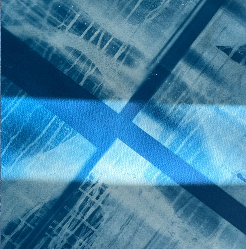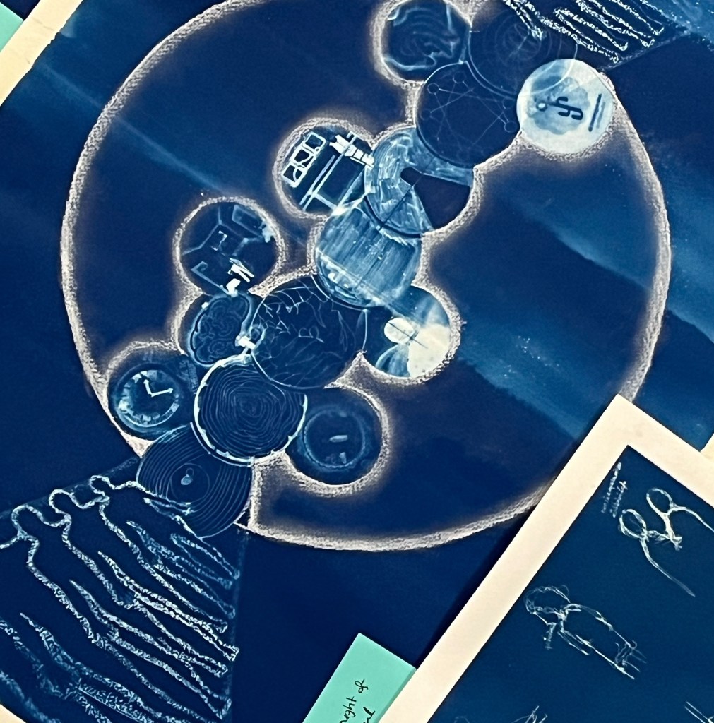 Cyanotype, also known as sunprinting, employs a chemical-based technique. This method, dating back 170 years, is a photographic printing process that yields distinctive prints with a dark greenish-blue hue. Cyanotype serves as a therapeutic process, addressing aspects such as context, time, and exposure to sunlight. It is characterized by its enjoyable and spontaneous nature, with an element of unpredictability and experimentation. In essence, a cyanotype functions much like a blueprint. Beyond using film negatives and positives, it allows for the use of plant materials and a variety of three-dimensional objects to create intriguing and artistic images and patterns on surfaces like paper, fabric, and other materials capable of absorbing the light-sensitive chemical solution.