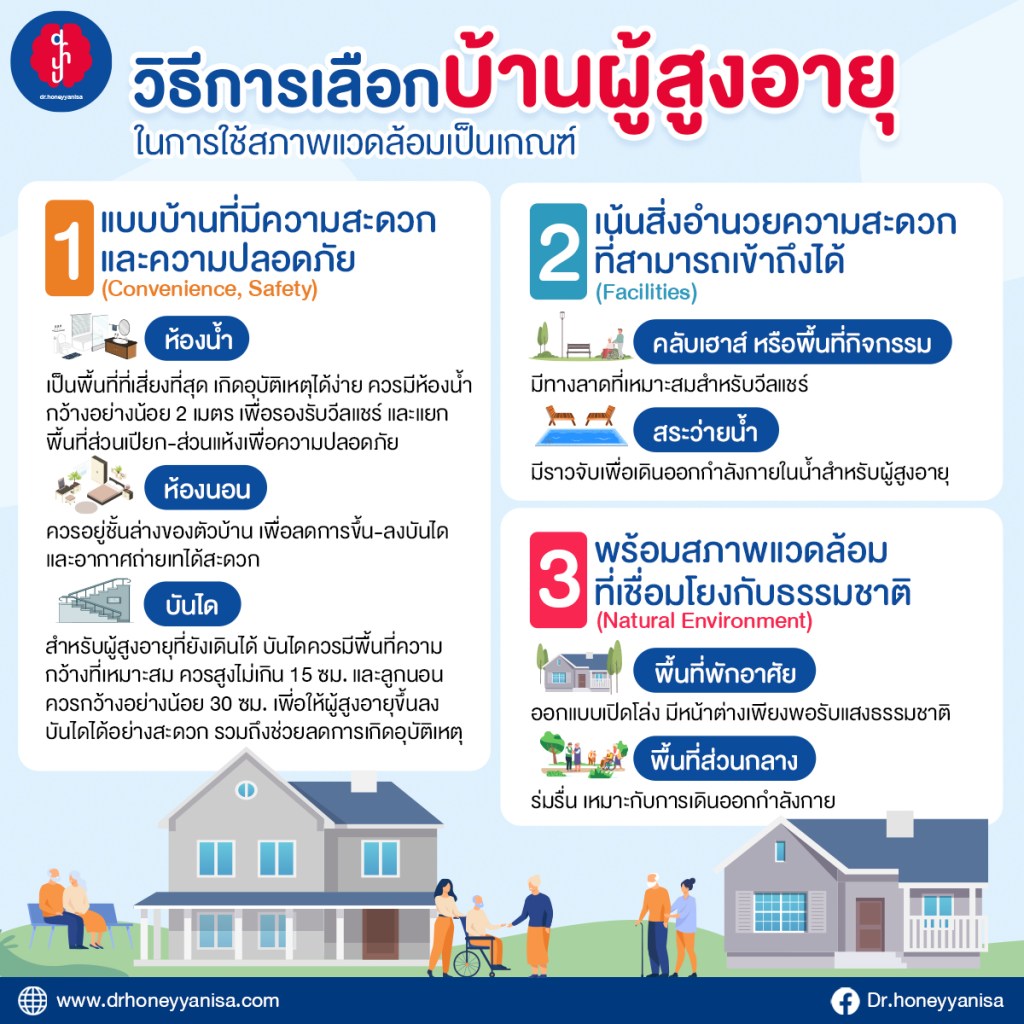 💪 สภาพแวดล้อมของผู้สูงอายุควรได้รับการปรับปรุงหรือจัดเตรียมให้เหมาะสมกับความต้องการและความสามารถของผู้สูงอายุ เพื่อให้ผู้สูงอายุสามารถใช้ชีวิตได้อย่างสะดวกสบายและปลอดภัย โดยเฉพาะอย่างยิ่งผู้สูงอายุที่มีภาวะสมองเสื่อม ซึ่งอาจมีปัญหาด้านความจำ การรับรู้ และการตัดสินใจ ดังนั้น สภาพแวดล้อมจึงมีความสำคัญอย่างยิ่งต่อการดูแลผู้สูงอายุกลุ่มนี้ สภาพแวดล้อมที่เหมาะสมสำหรับผู้สูงอายุโดยทั่วไป 👨🦳 • ควรมีแสงสว่างเพียงพอ โดยเฉพาะบริเวณทางเดิน ห้องน้ำ และบันได เพื่อความปลอดภัยในการเดิน • ควรมีพื้นผิวเรียบ และมีสีเดียวกัน ไม่มีสิ่งกีดขวาง เพื่อป้องกันการลื่นล้ม • ควรมีราวจับหรืออุปกรณ์ช่วยพยุงตัวในบริเวณที่เสี่ยงต่อการหกล้ม เช่น ห้องน้ำ บันได และทางเดิน • ควรมีอุปกรณ์อำนวยความสะดวก เช่น เก้าอี้สูง โต๊ะเตี้ย เป็นต้น • ควรจัดวางสิ่งของให้อยู่ในตำแหน่งที่ผู้สูงอายุสามารถหยิบจับได้ง่าย • ควรมีสภาพแวดล้อมที่เงียบสงบ ไม่รบกวนการพักผ่อน • ควรมีสภาพแวดล้อมที่สะอาด ทำความสะอาดได้ง่าย ปลอดเชื้อ สภาพแวดล้อมที่เหมาะสมสำหรับผู้สูงอายุที่มีภาวะสมองเสื่อม 👵 • ควรจัดสภาพแวดล้อมให้เรียบง่าย เป็นระเบียบ เพื่อป้องกันความสับสน • ควรจัดวางสิ่งของให้อยู่ในตำแหน่งที่เดิมๆ แต่สามารถเปลี่ยนแปลงได้ง่าย • ควรใช้ป้ายบอกทางหรือสัญลักษณ์ต่างๆ เพื่อให้ผู้สูงอายุสามารถมองเห็นและเข้าใจได้ง่าย • ควรมีอุปกรณ์เตือนภัย (Sensor) เช่น สัญญาณเตือนไฟไหม้ สัญญาณเตือนน้ำรั่ว เป็นต้น • ควรมีระบบความปลอดภัย เช่น ระบบตรวจสอบบุคคล กล้องวงจรปิด เป็นต้น • ควรมีกิจกรรมหรือสิ่งกระตุ้นต่างๆ เพื่อให้ผู้สูงอายุมีกิจกรรมทำสนุก และรู้สึกมีส่วนร่วม การจัดเตรียมสภาพแวดล้อมที่เหมาะสมสำหรับผู้สูงอายุที่มีภาวะสมองเสื่อม จะช่วยให้ผู้สูงอายุสามารถใช้ชีวิตได้อย่างสะดวกสบายและปลอดภัยมากขึ้น นอกจากนี้ยังช่วยลดความเสี่ยงในการเกิดอุบัติเหตุและช่วยให้ผู้สูงอายุสามารถใช้ชีวิตได้อย่างอิสระและมีคุณภาพชีวิตที่ดีมากยิ่งขึ้น