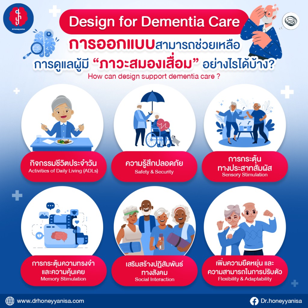 การออกแบบสำหรับการดูแลผู้มีภาวะสมองเสื่อม มีส่วนเกี่ยวข้องในหลายด้าน ดังนี้